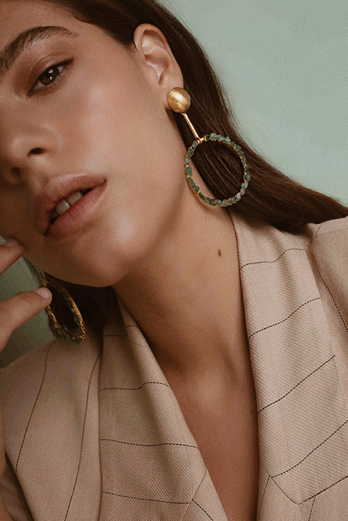 Aretes Front Back Waves Esmeralda